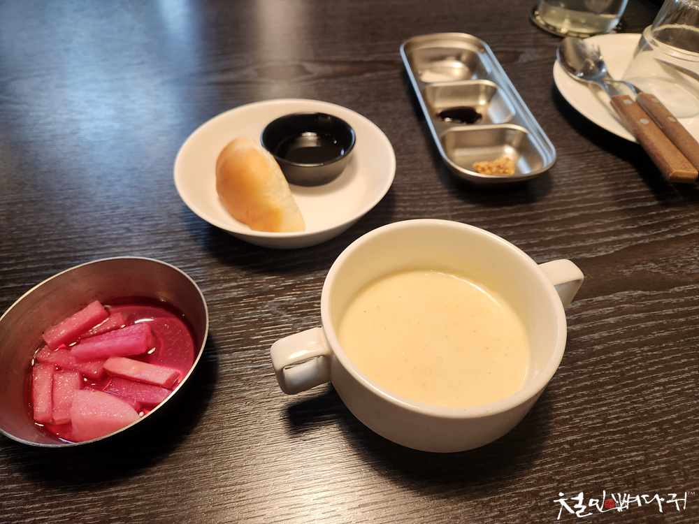 양이 많아지면 먹기 힘들 것 같아서 스테이크만 먹었습니다.