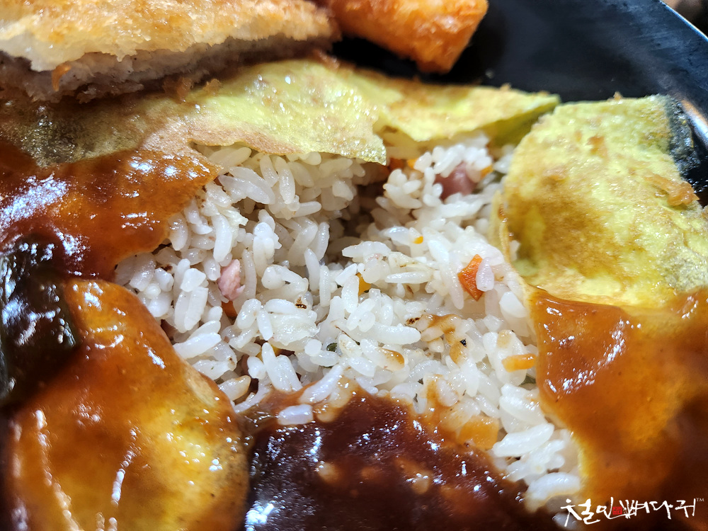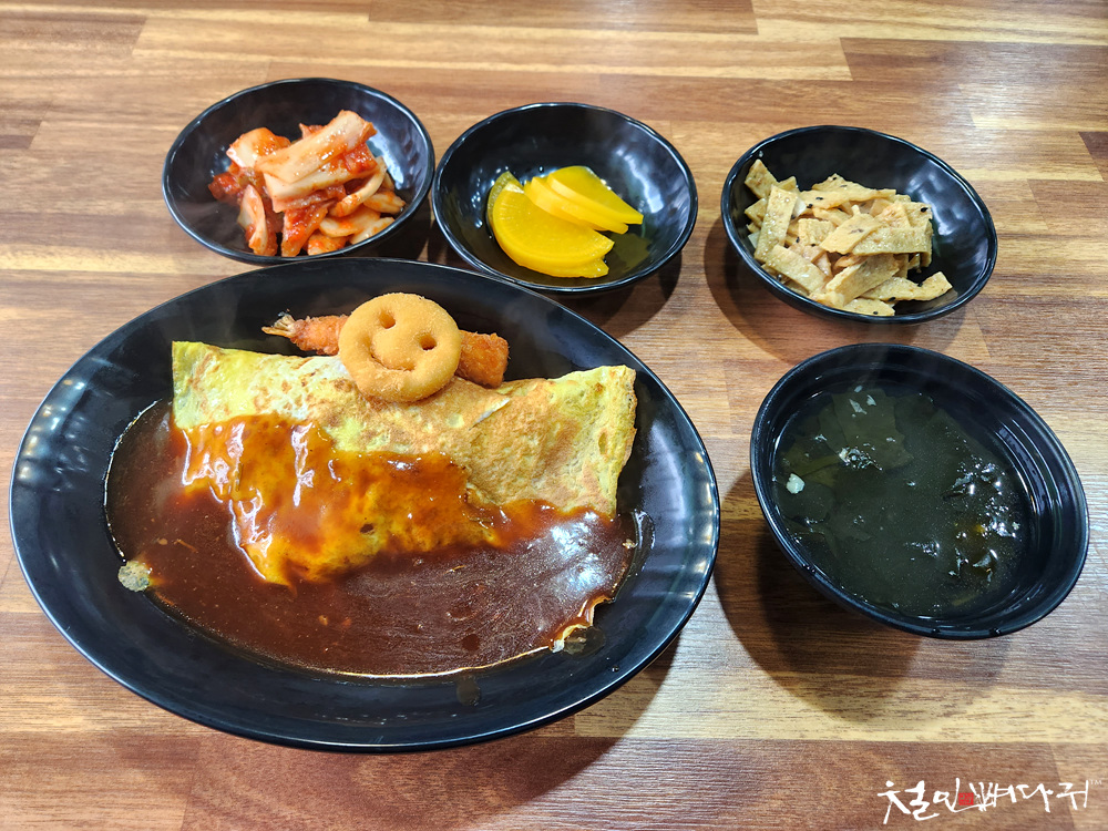 오므라이스는 옛날 학교 앞 분식집 맛입니다.