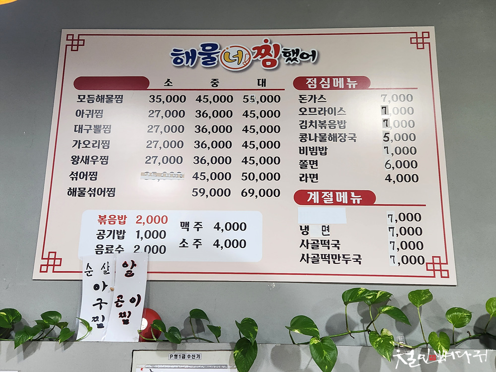 해물찜들이 메인메뉴인데,