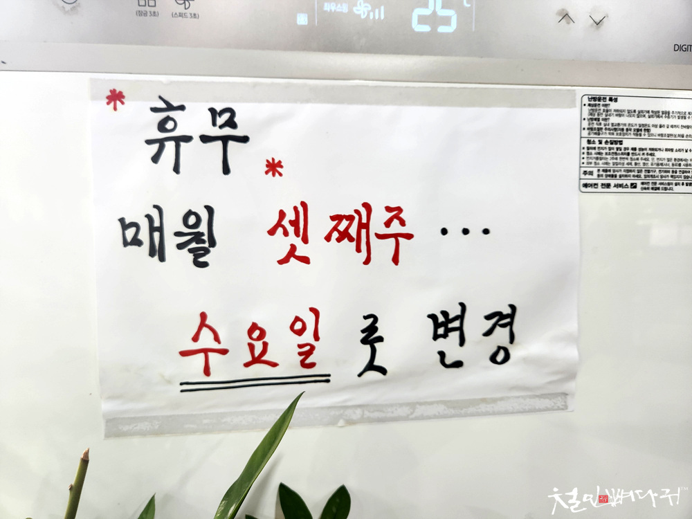 쉬는 날은 한 달에 한번 있습니다.