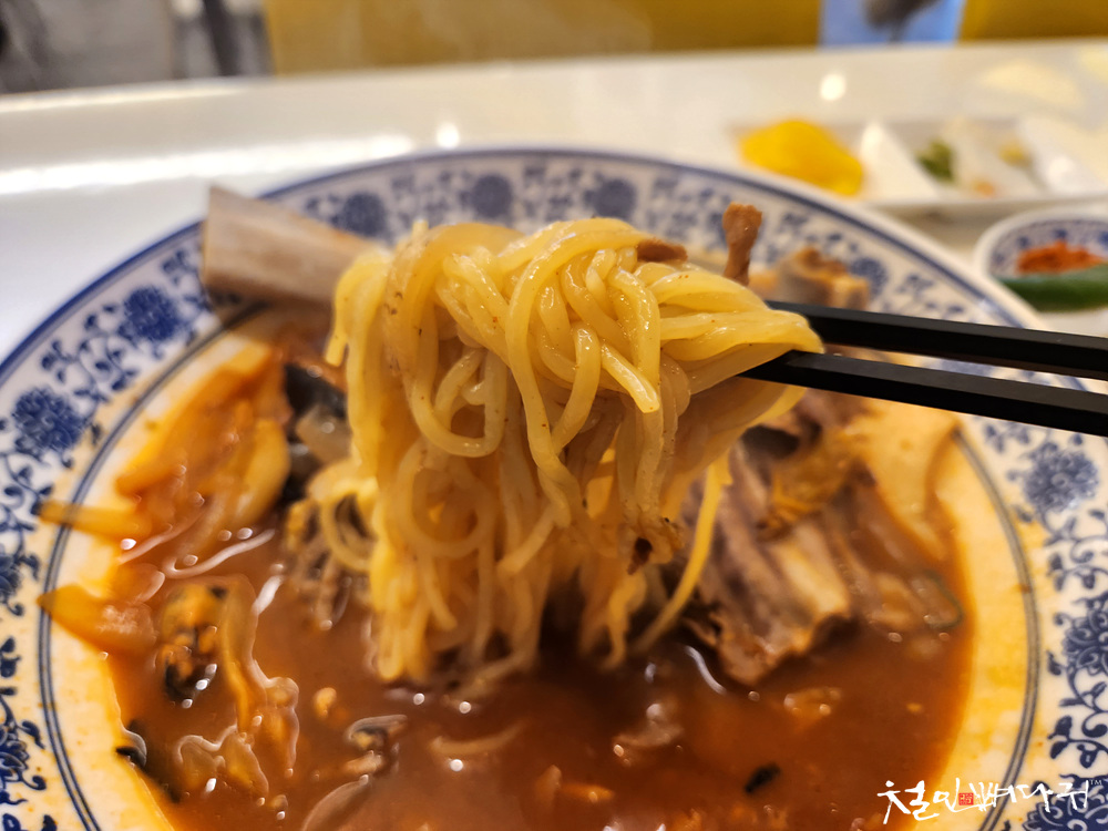 커다란 갈비가 들어 있는 짬뽕입니다.