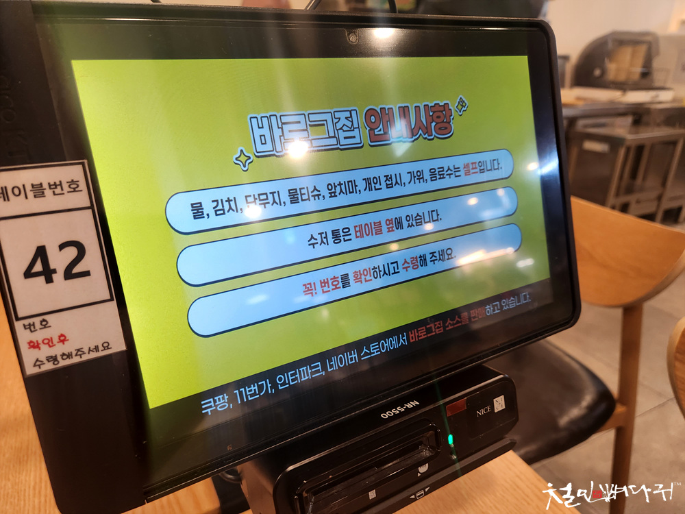 테이블의 태블릿에는 자리번호가 표시되어 있고,