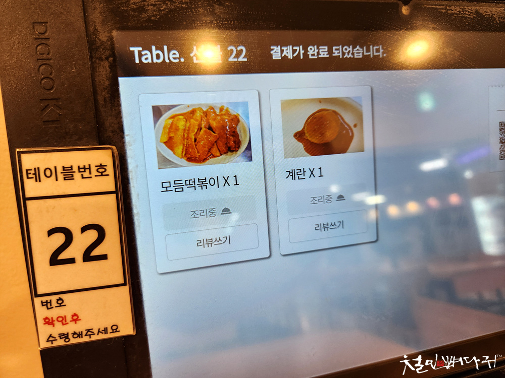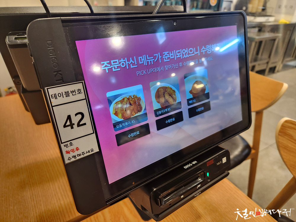 음식이 준비되면, 태블릿에 안내가 나오고,