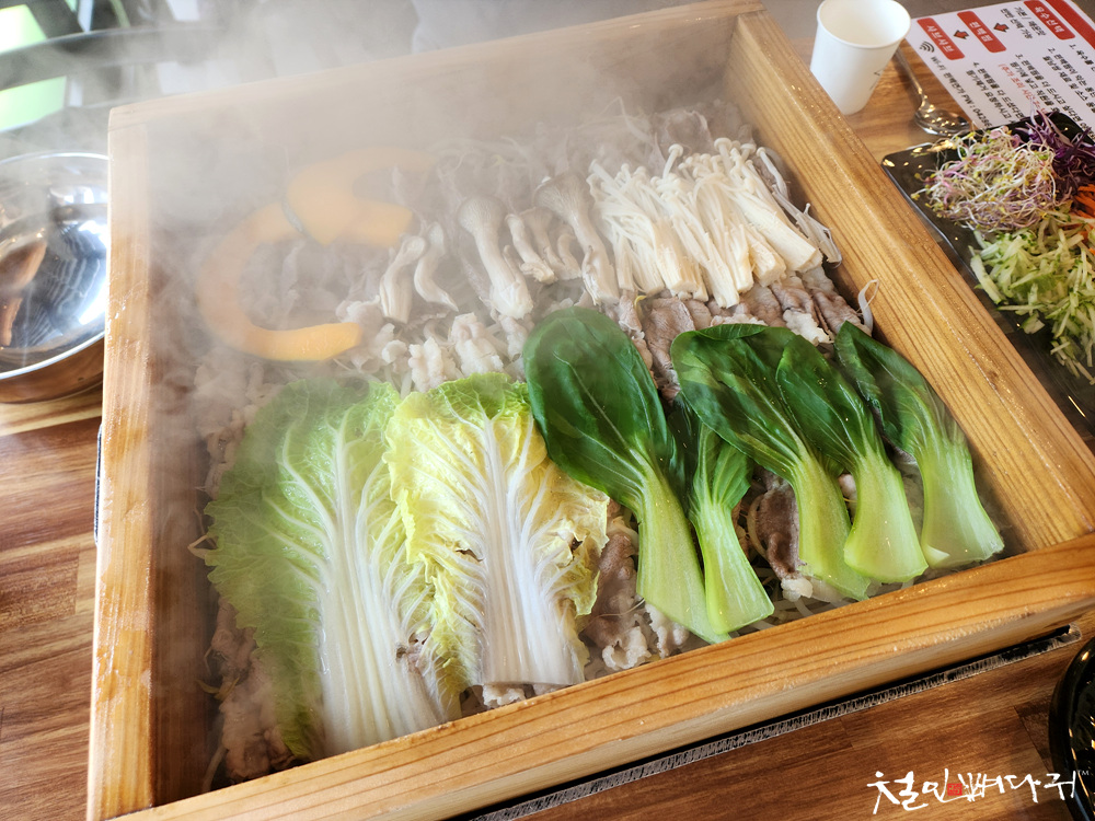 2번째부터는 손님들이 편백찜통에 재료들을
