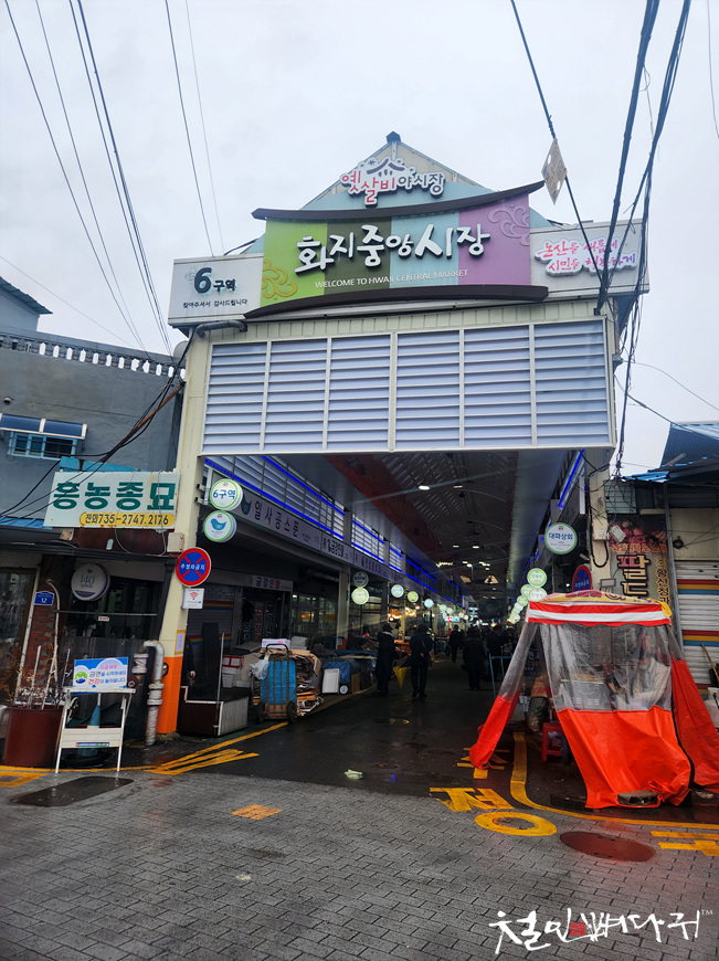 주차장 바로 앞에 있는 화지중앙시장 입구로