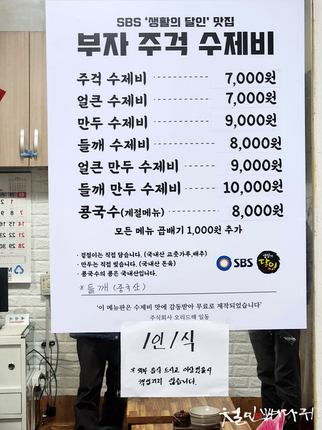 모든 메뉴가 수제비입니다.