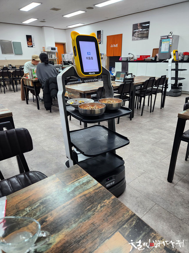 알꼬막짬뽕, 짜장면을 로봇이 가져옵니다.