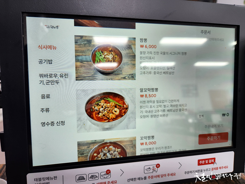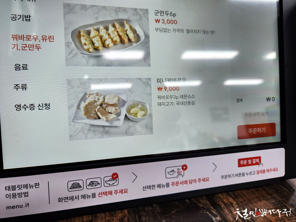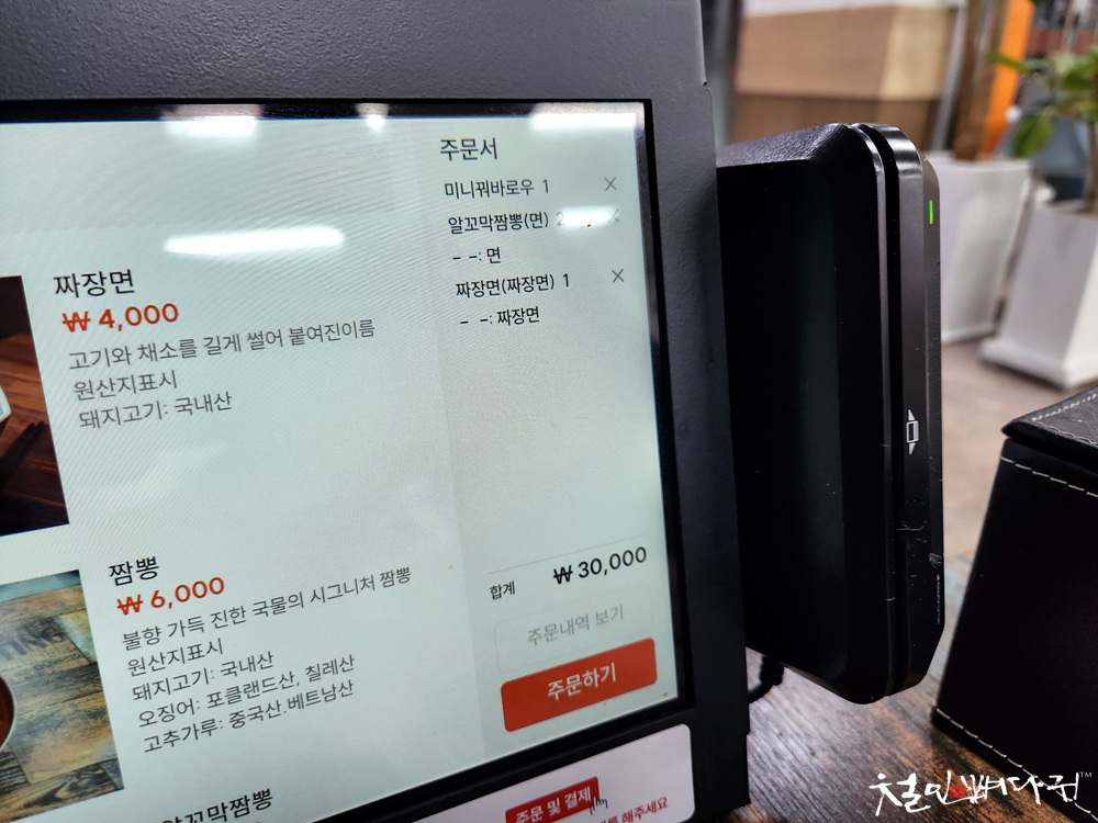 주문은 테이블의 태블릿으로 주문할 수 있습니다.