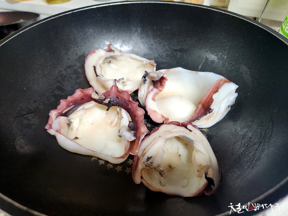다리 부분은 라면에 같이 끓인 후, 건져내고,