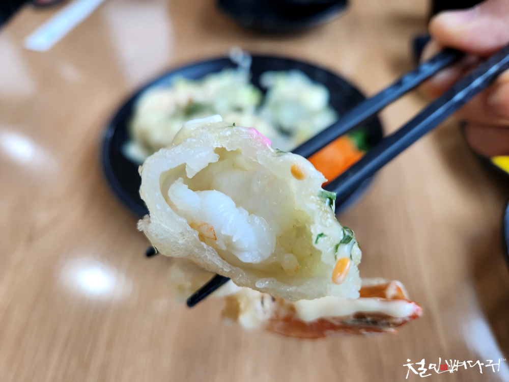 큼직한 새우에 튀김옷 입고,