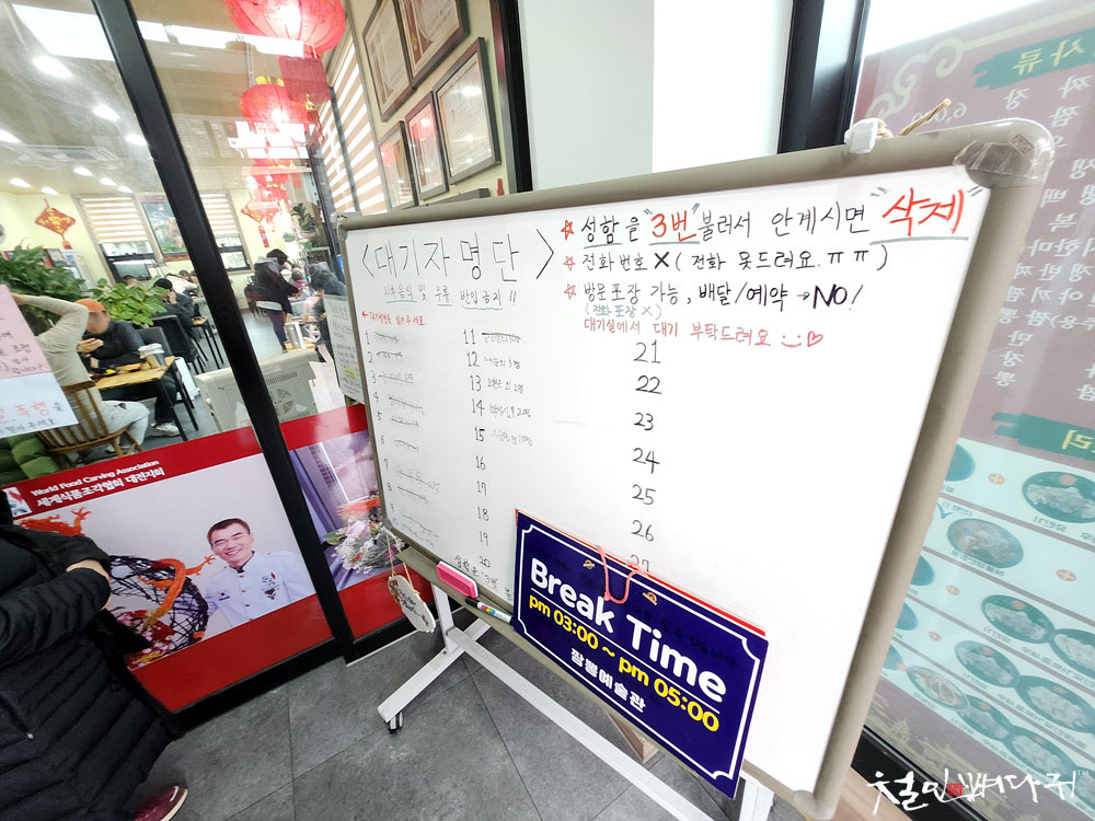 대기인원은 입구 명단에 이름과 인원수