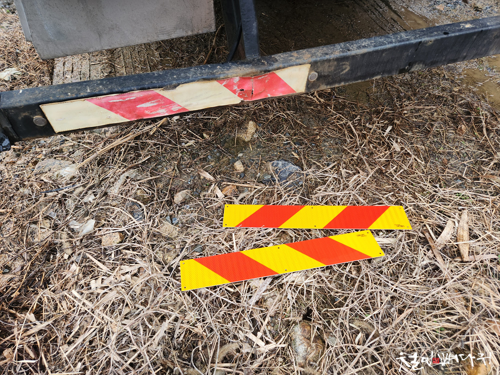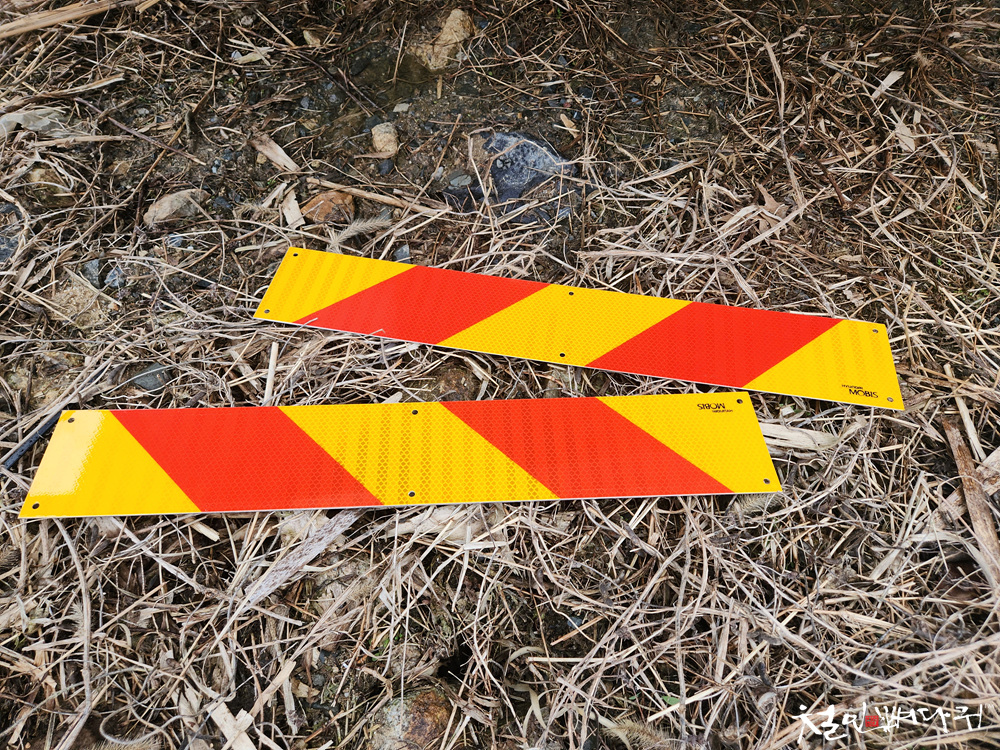 기존에 부착된 반사스티커는 삭아서 빛이 바랬습니다.