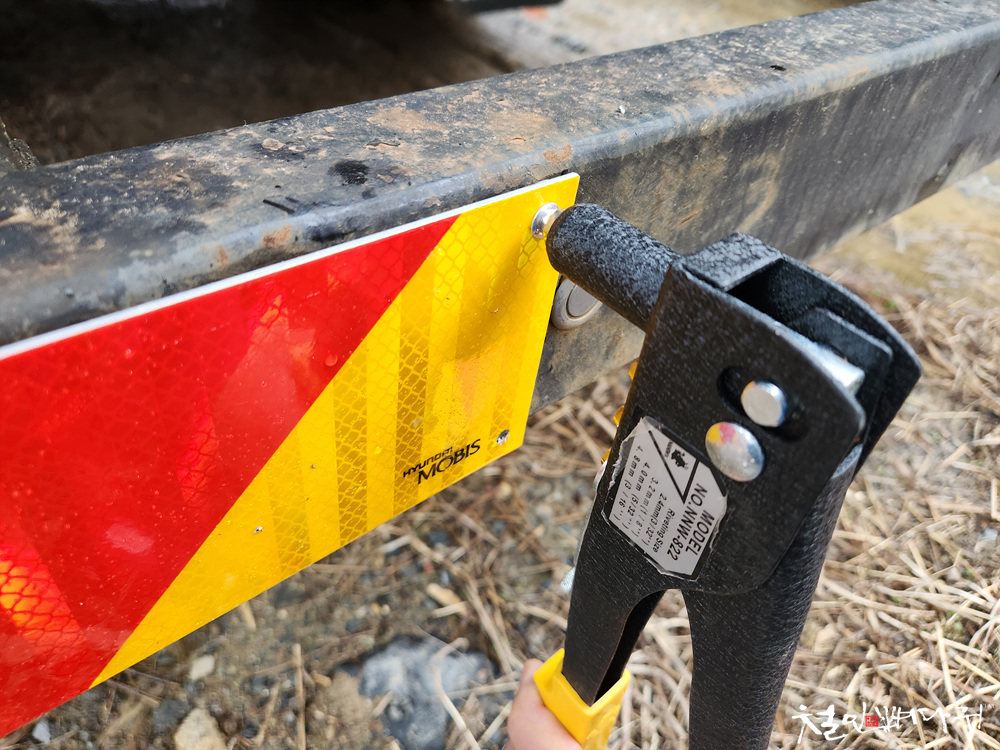 현대5톤트럭.후방안전범퍼.반사판부착