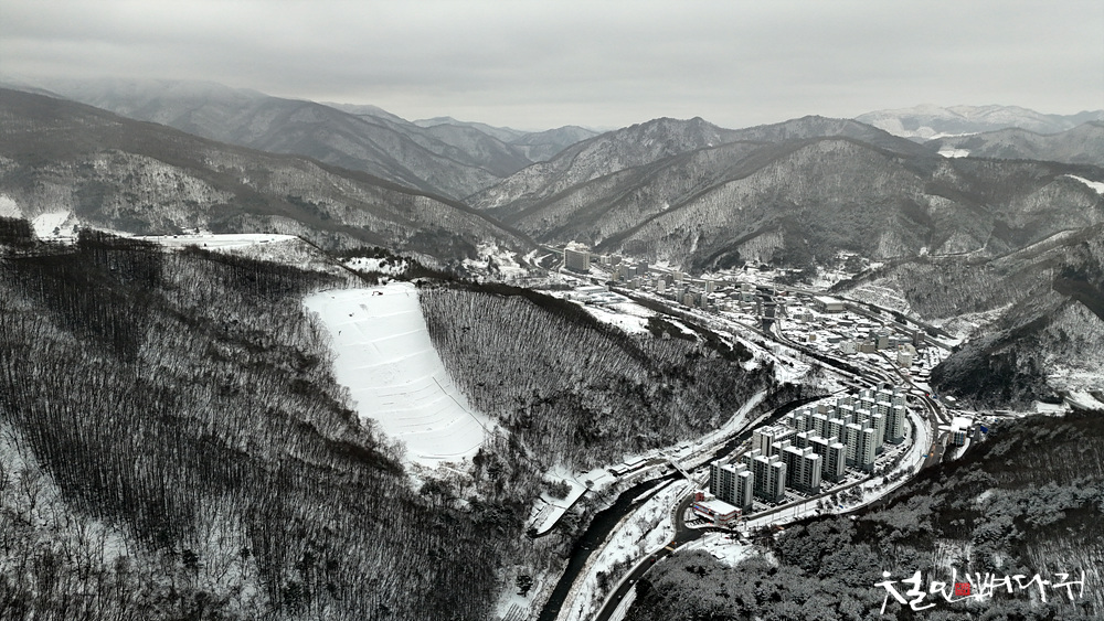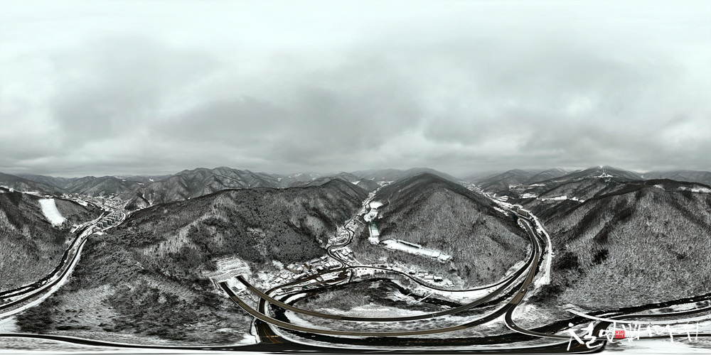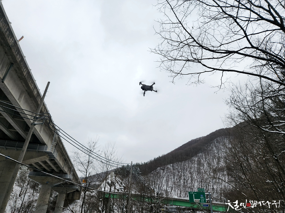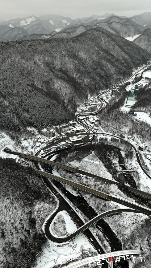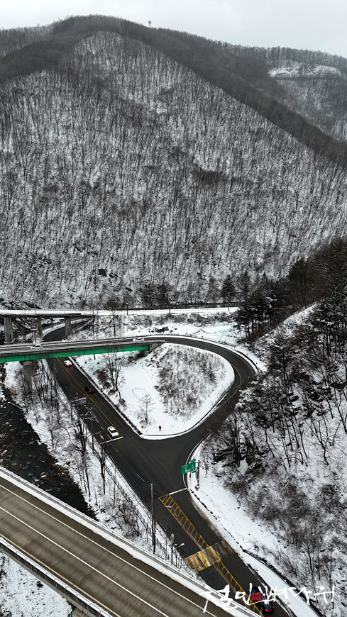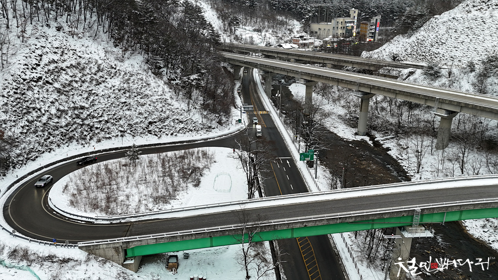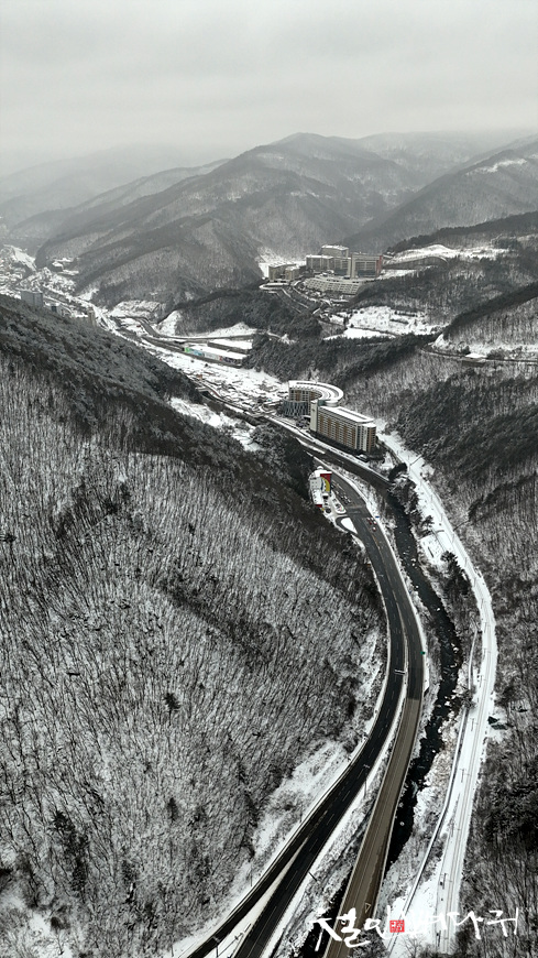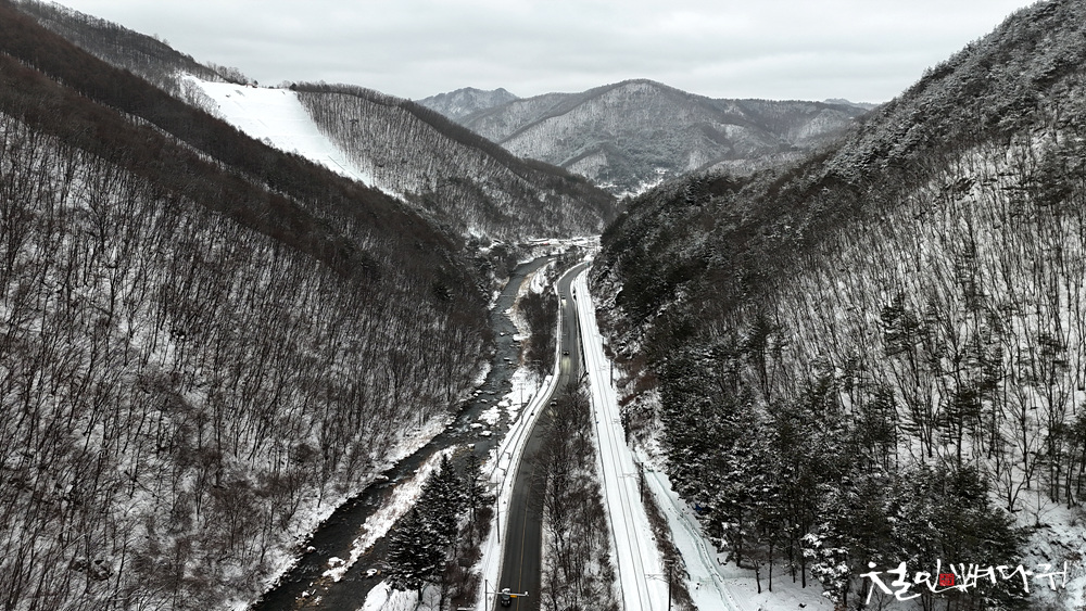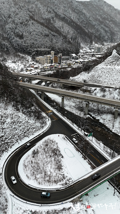하얀눈세상의 강원도 정선군 부처소교차로 상공