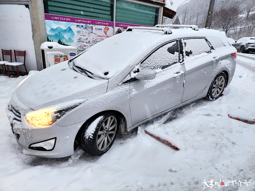 자동차에 왔더니, 3시간 만에 눈이 5cm 이상 덮여있습니다.