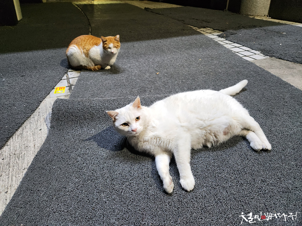 고양이들이 마중 나와서 고양이들과 놀다 왔습니다.