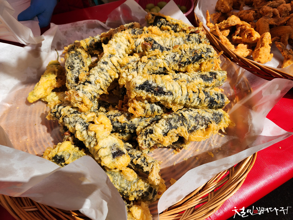 금요시장 걷다가 튀김을 만들어 파는 곳에서