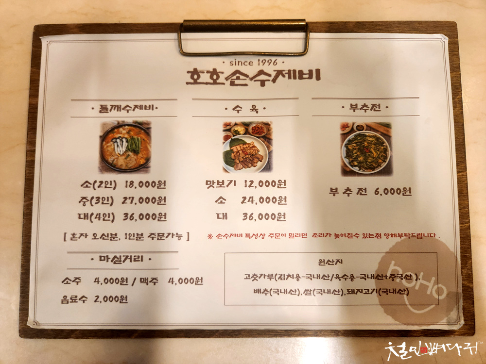 수제비, 수육, 부추전이 메뉴의 전부이고,