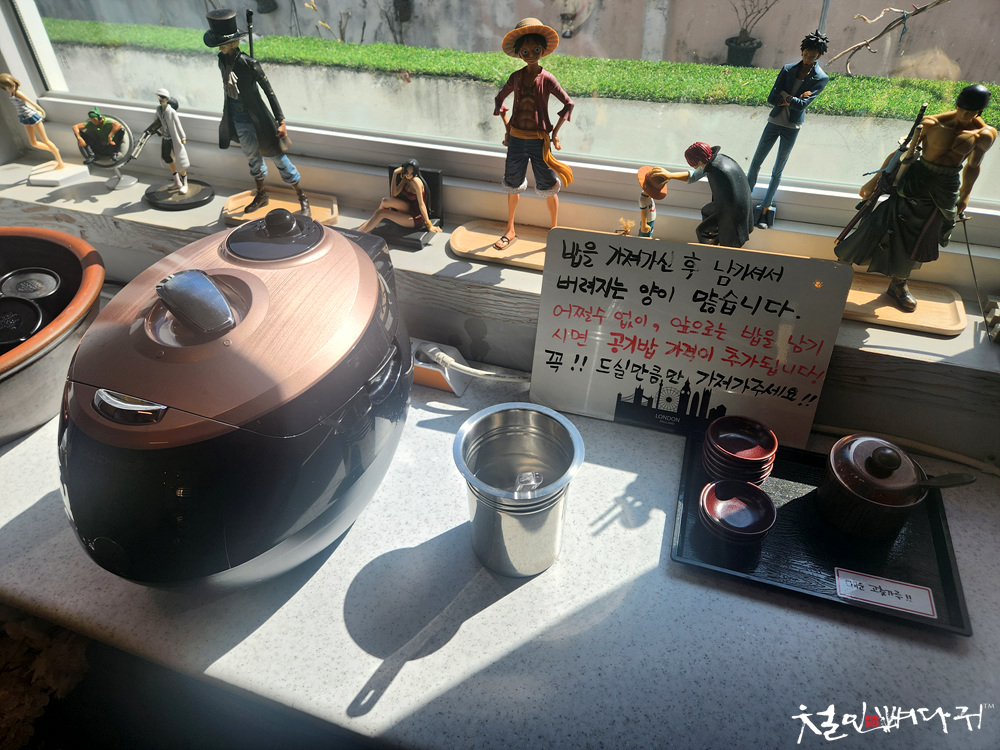 창가의 밥솥에서 먹을 만큼 퍼다 먹으라고 해서