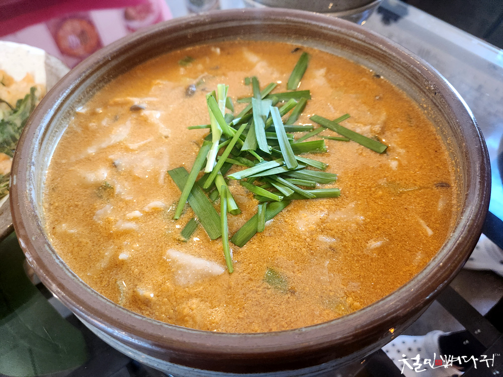 들깨수제비는 항아리 그릇에 담겨나옵니다.