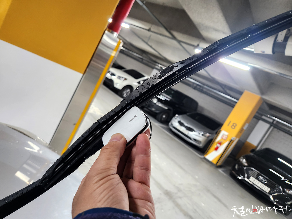 마침 비가 와서 와이퍼를 훑어주었는데,