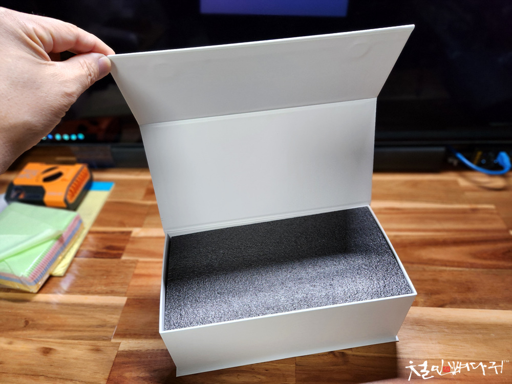 박스는 딴딴하고, 자석으로 뚜껑이 부착되는 방식입니다.