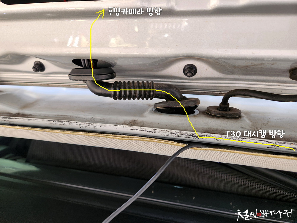 트렁크 내부에서 트렁크도어 쪽으로 배선은