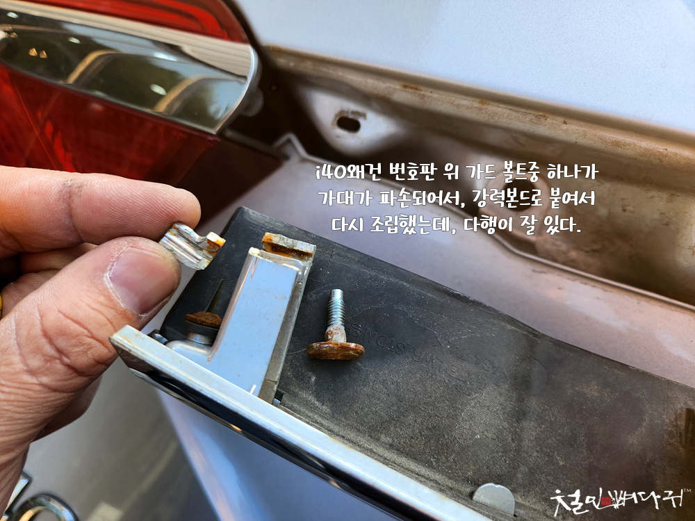 트렁크 가니쉬글 고정해 주는 볼트 쪽 지지대가
