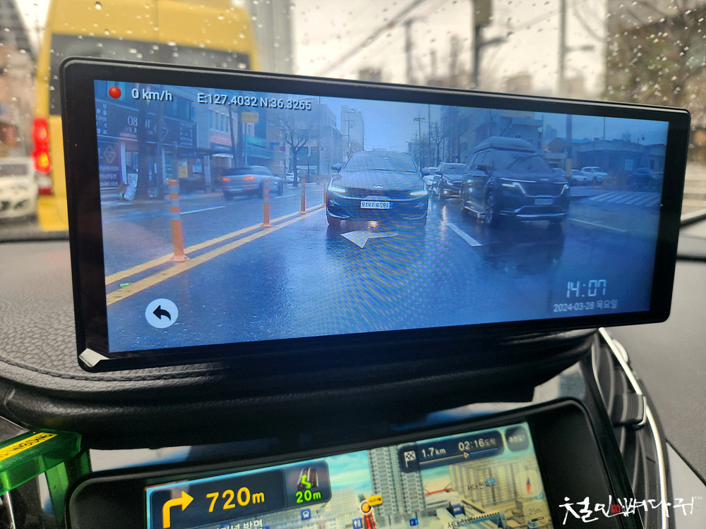 빗 속에서 주행중에 크게 문제 없이 잘 보입니다.