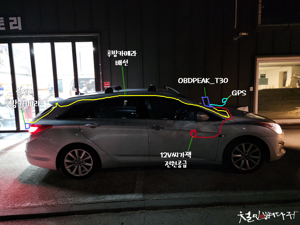 i40왜건에 설치된 T30대시캠의 배선은