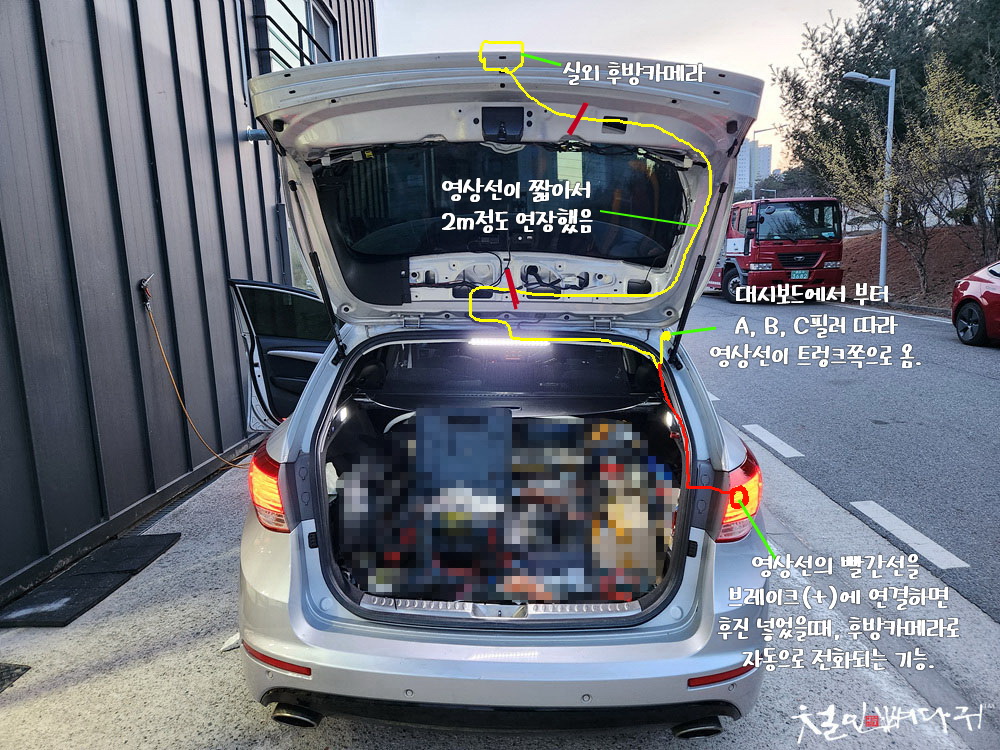 트렁크 쪽 배선작업 진행은 사진처럼 했습니다.