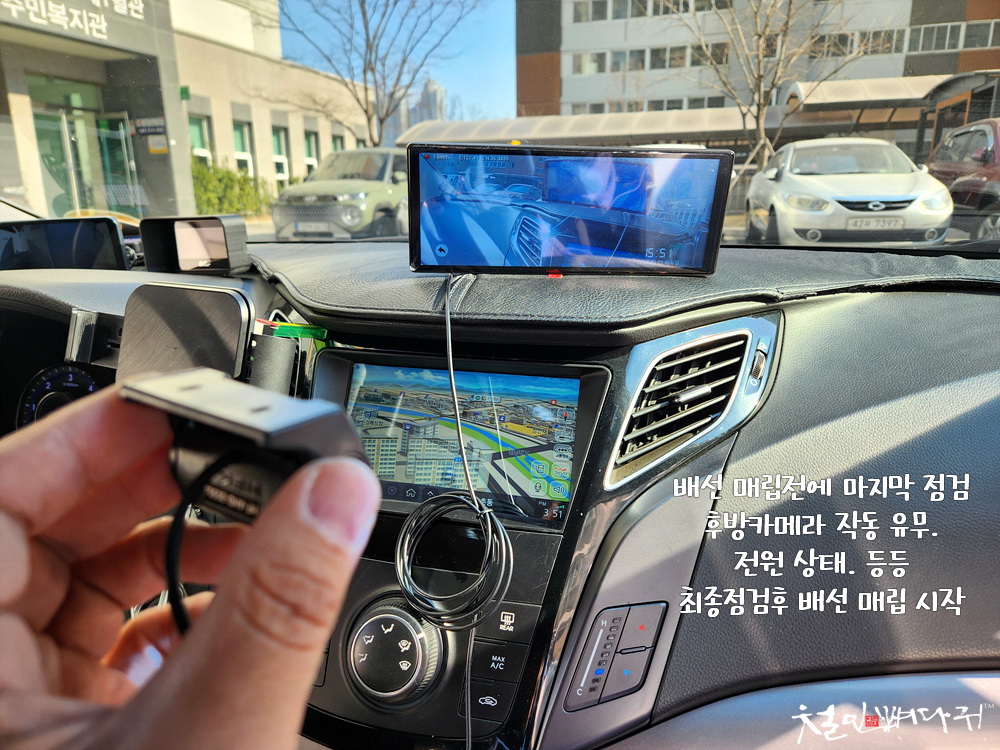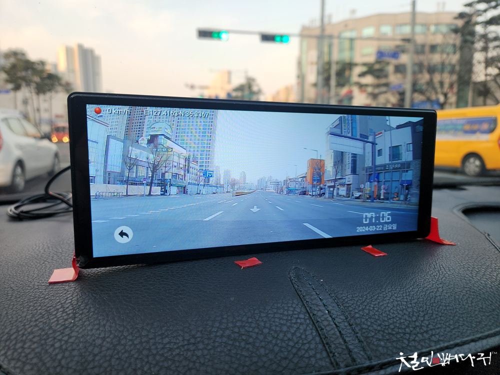 아침에 도로 주행하면서 상시로 후방을 보여주는