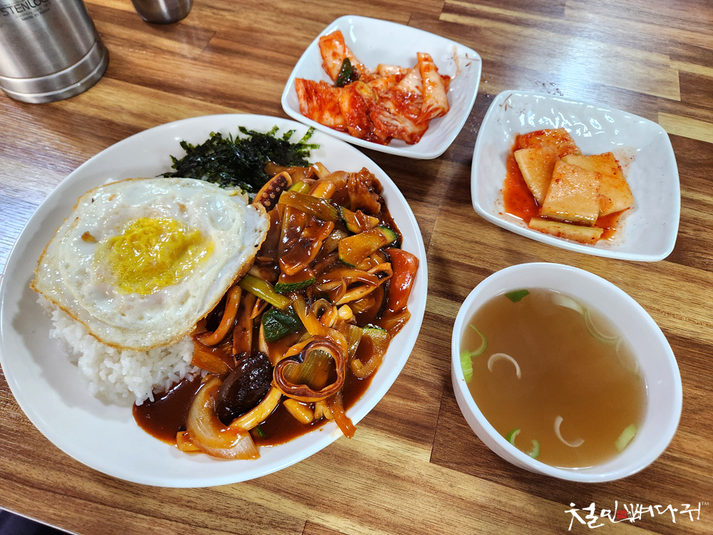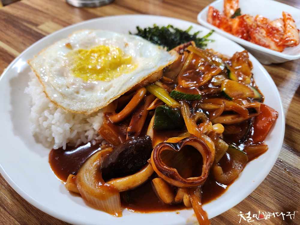 다른 음식들도 많은데, 저는 오징어덮밥만 먹습니다.
