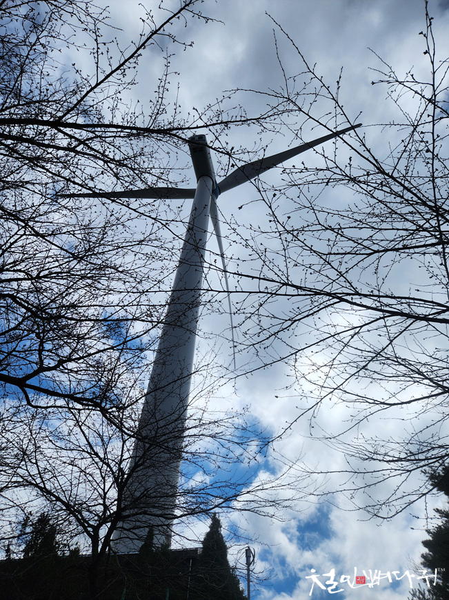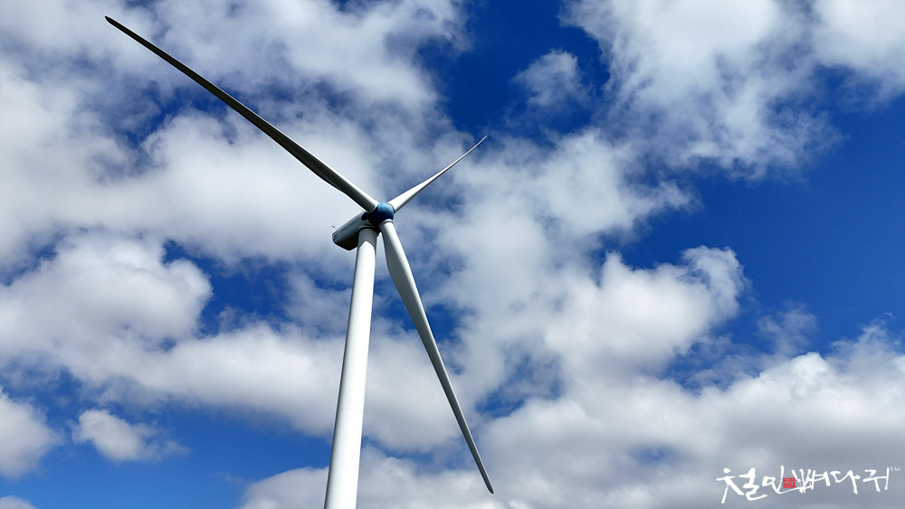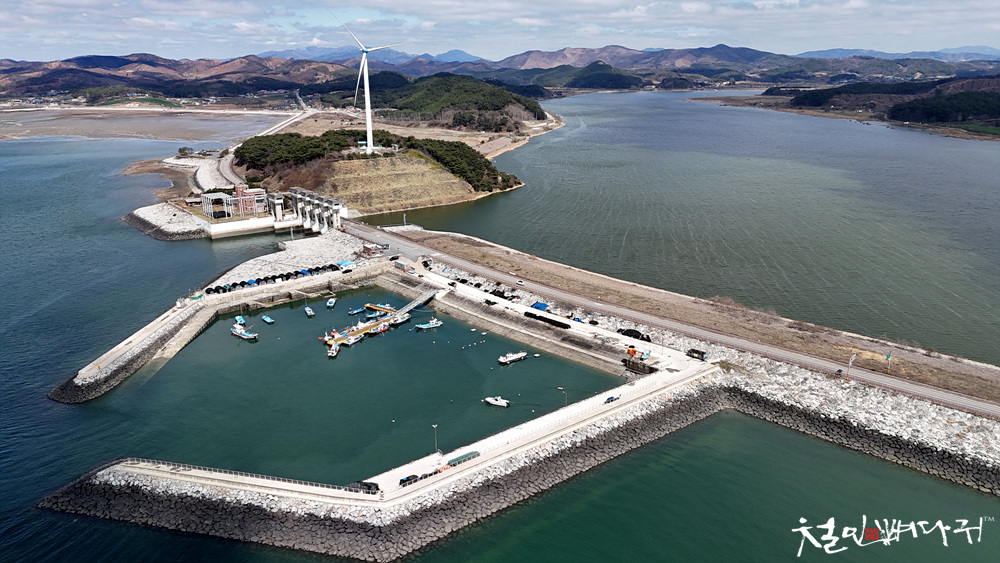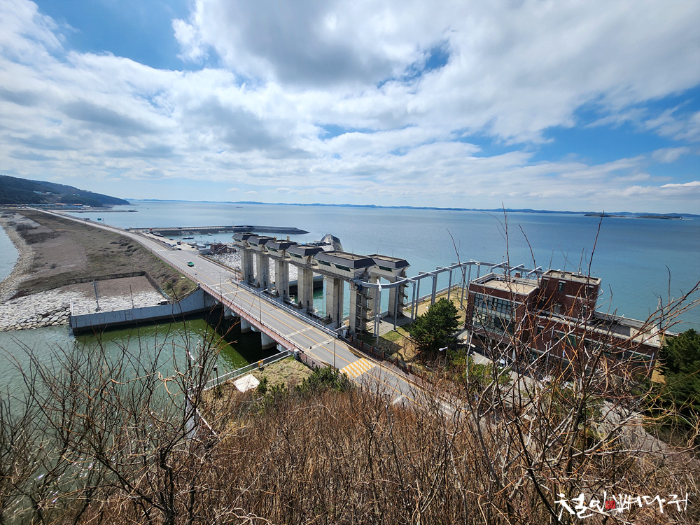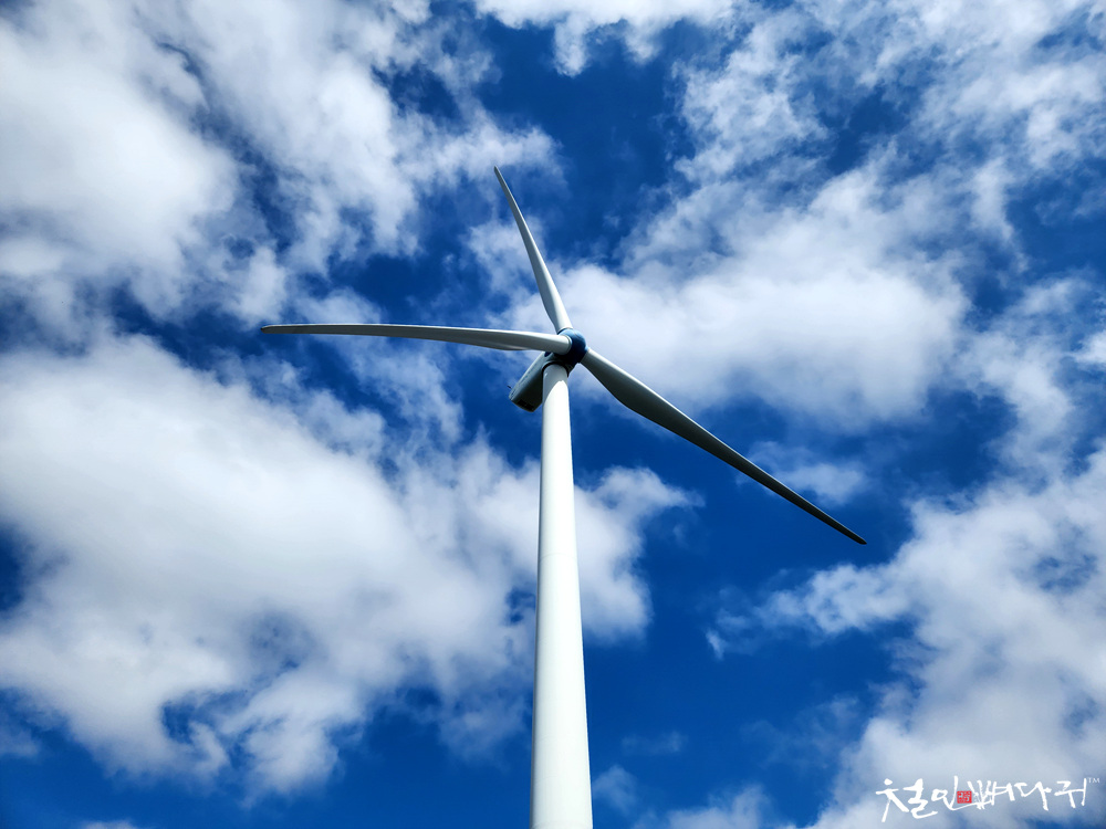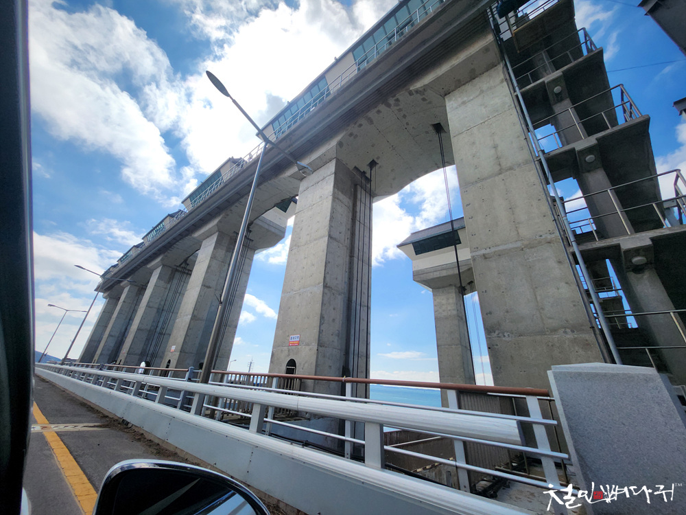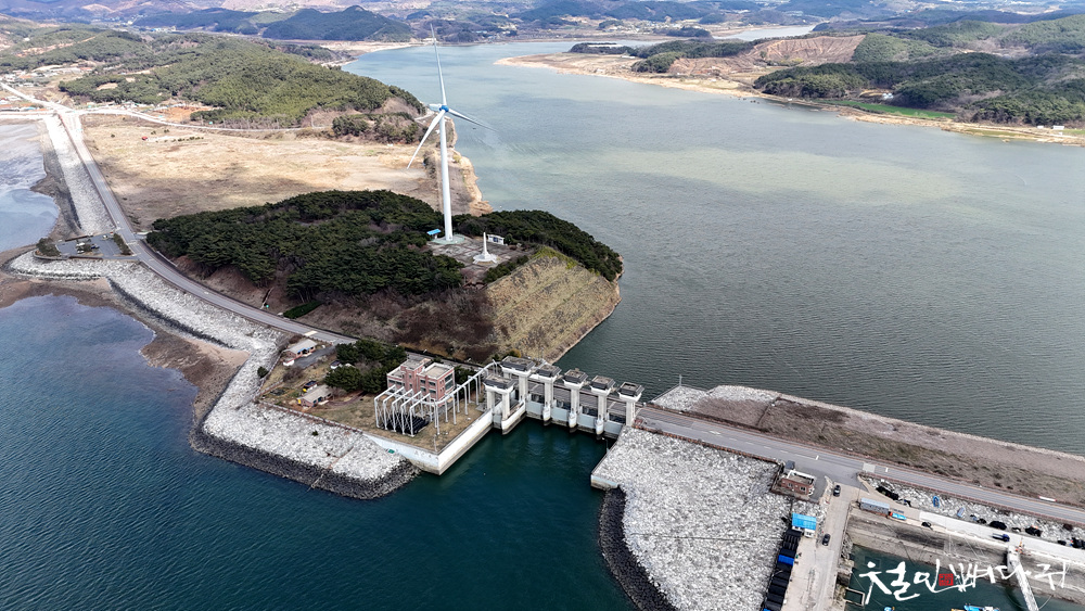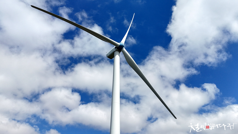 거대한 풍력발전기, 그리고, 왼쪽이 홍성-보령방조제입니다.