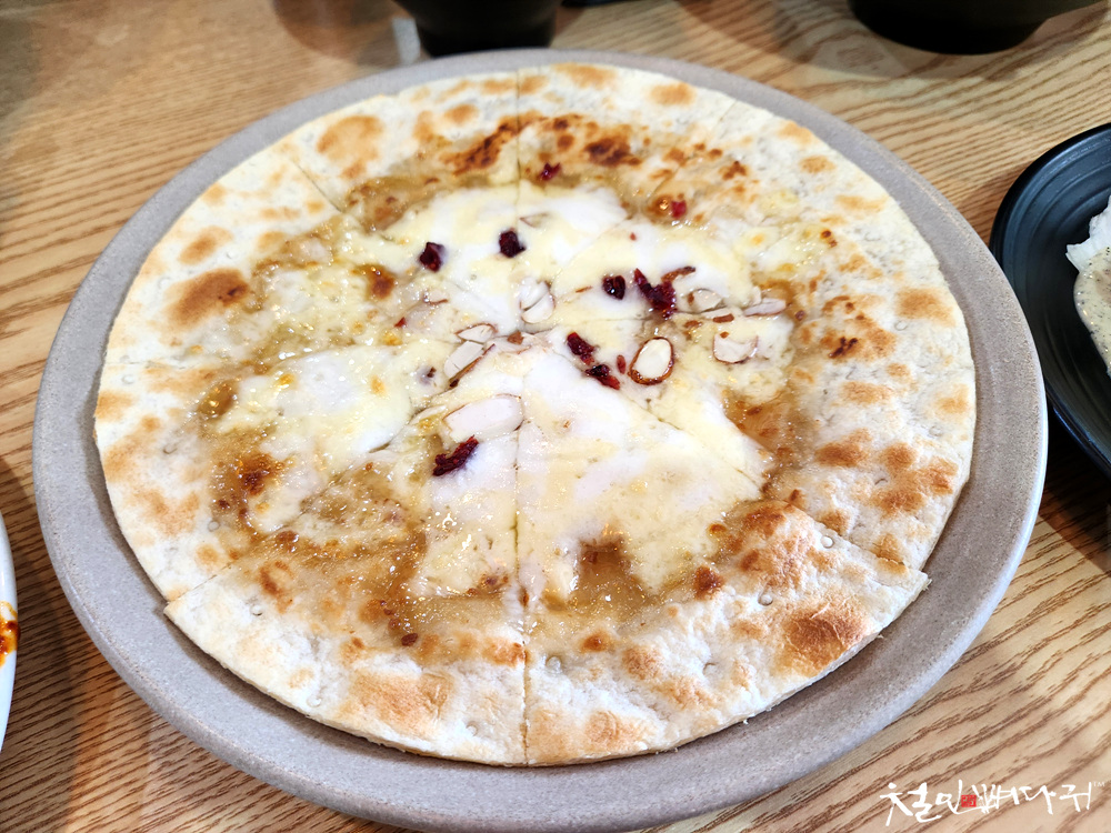 얇은 피자에 꿀 발라져 있어서
