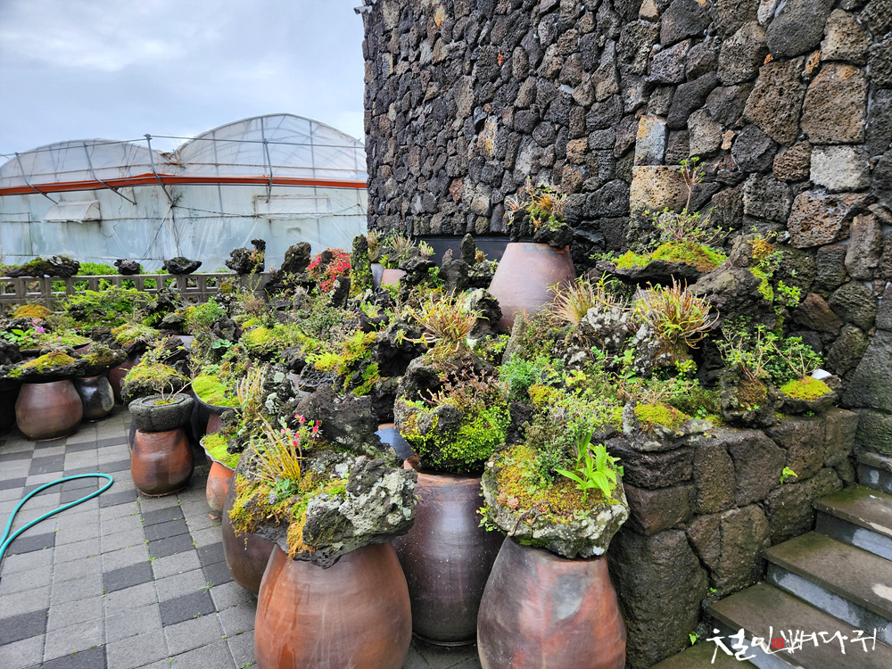 마당의 식물들도 현무암에 살게 했습니다.