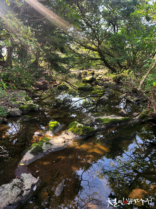 작은 개울물이 나왔는데, 제주도의 신비함을
