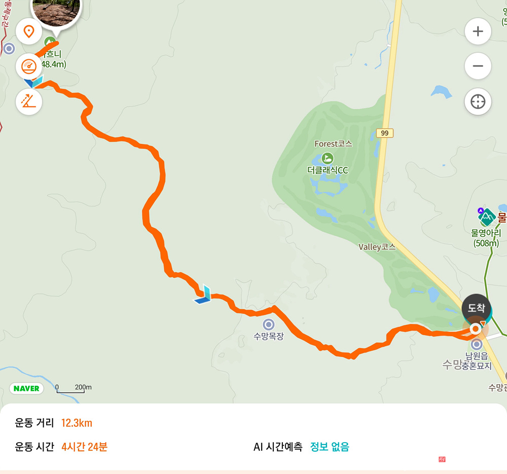 다 걸어서 돌아오니 12.3km 정도의 거리입니다.