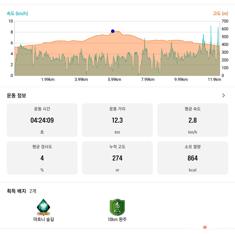 마흐니숲길은 왕복 12.3km라서 딴생각할 여유가 없네요.