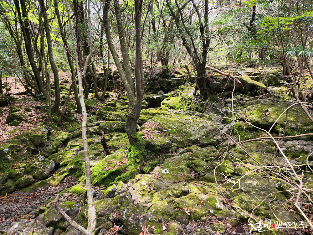 굳어진 커다란 바위들과 용암길들이 있는 곳이었고,