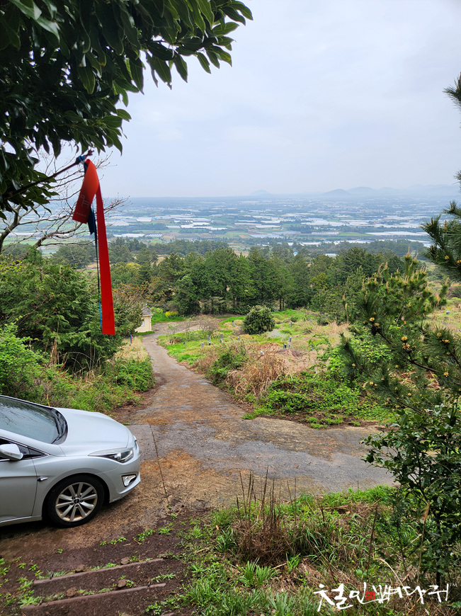 산방산과 단산(바굼지오름)이 보이는 곳입니다.