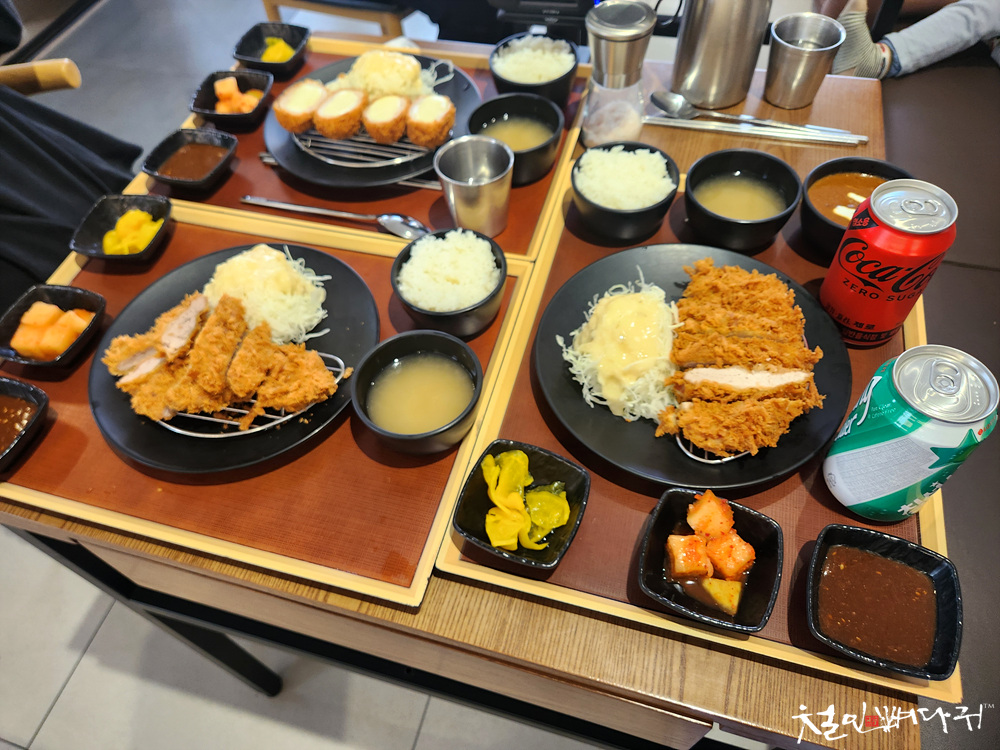 판매하는 돈까스 3종을 다 주문해서 사진 찍고 있어서