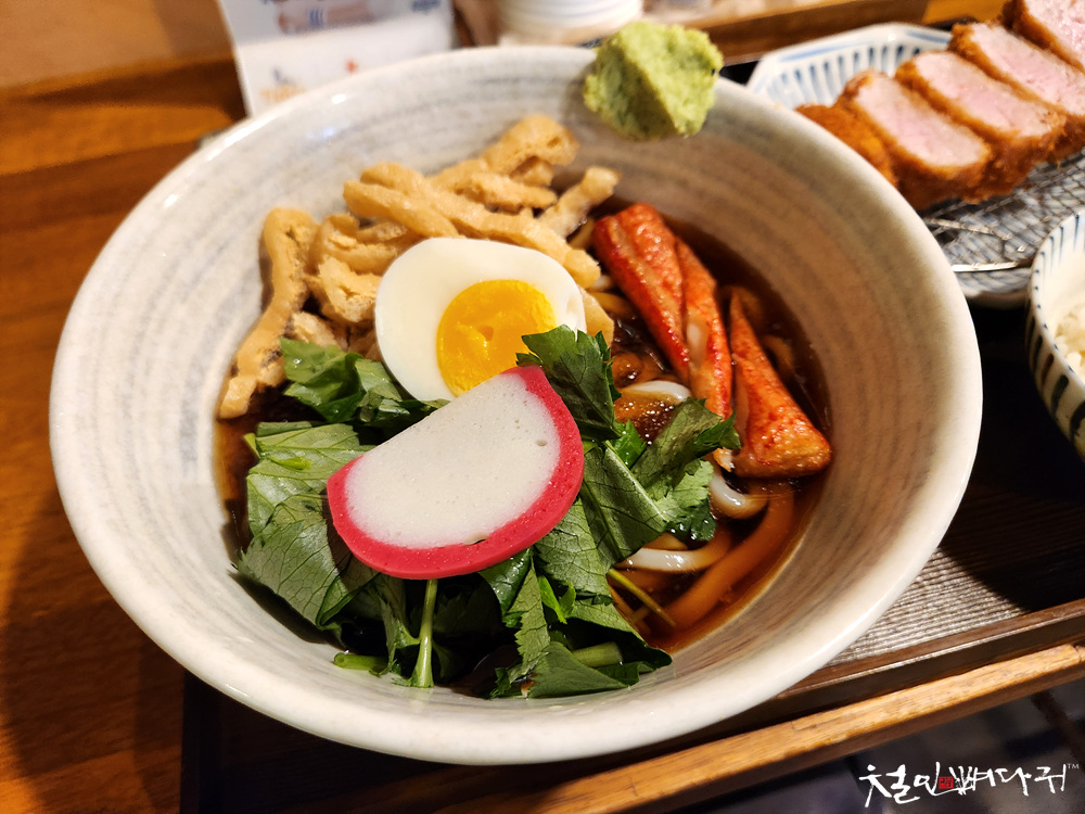 시원한 우동은 면이 더 쫀득쫀득하고 탱탱한 느낌입니다.