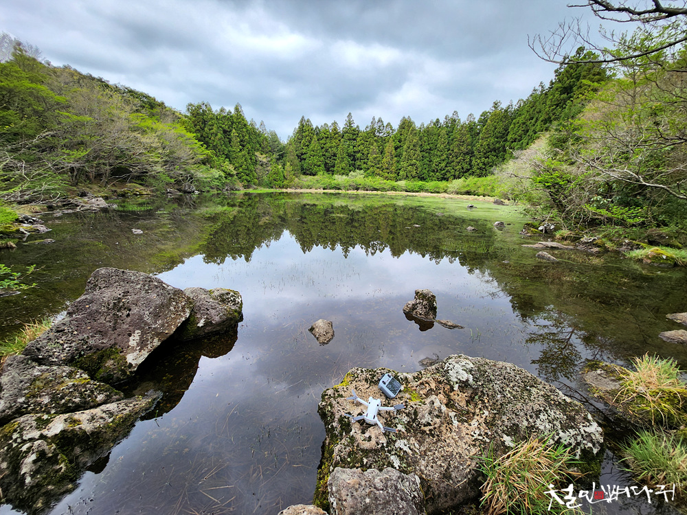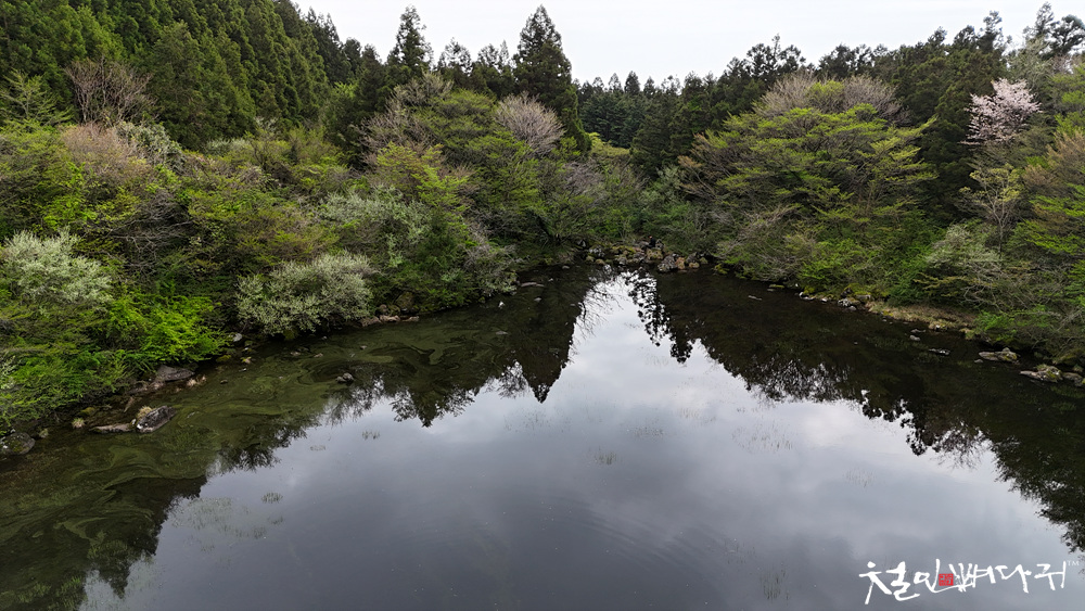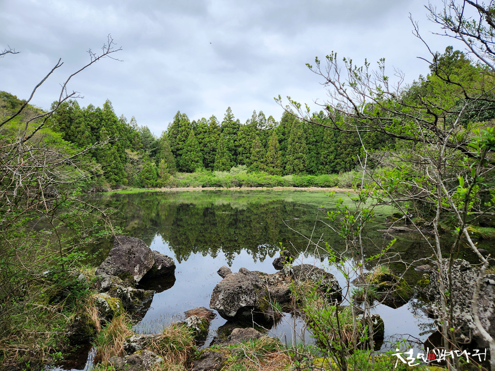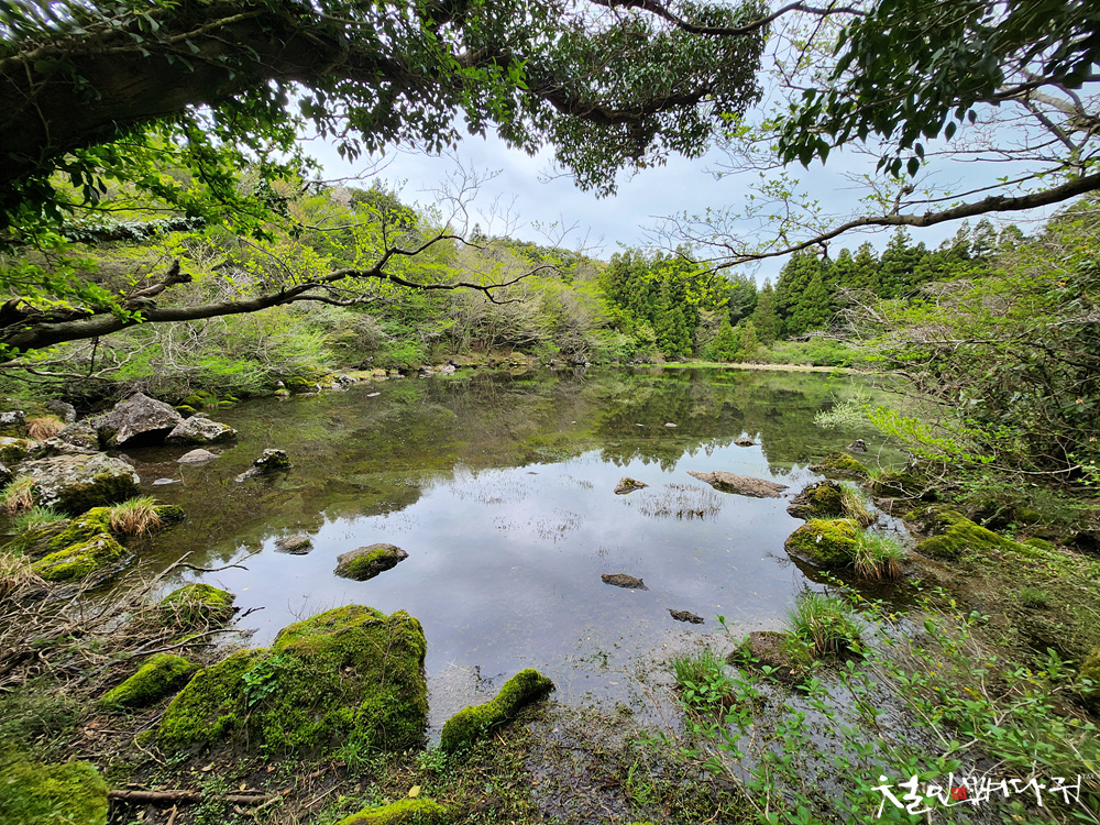 조용하고 새소리만 들리는 커다란 물웅덩이는