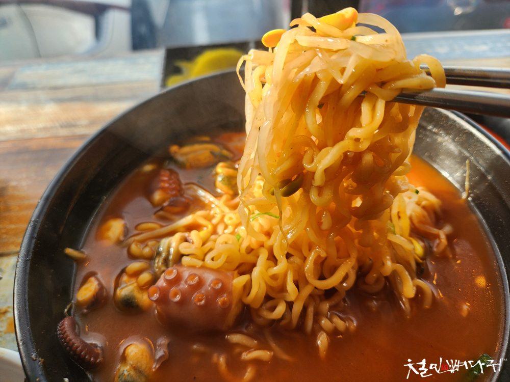 바다가 보이는 곳에 앉아서 문어해물라면을