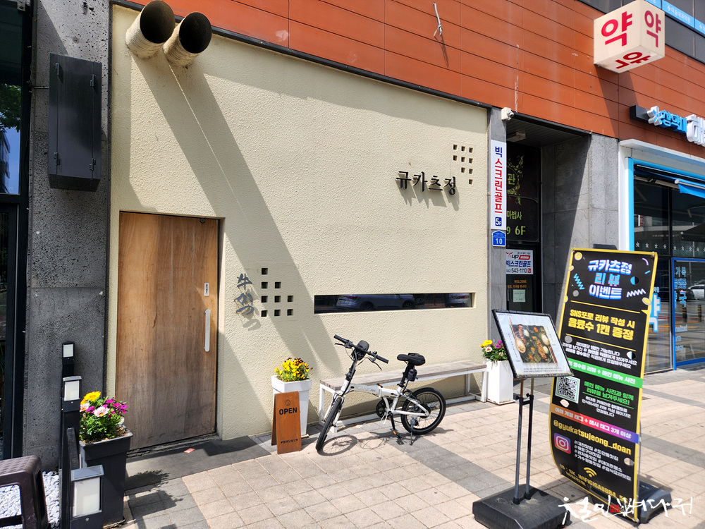 식당 밖에 대표 메뉴가 있습니다.