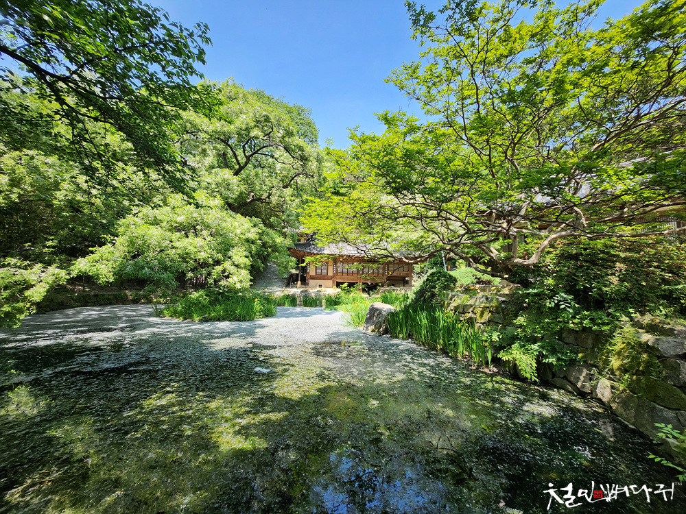 남간정사는 전면의 반석 위에 연못을 조성하여