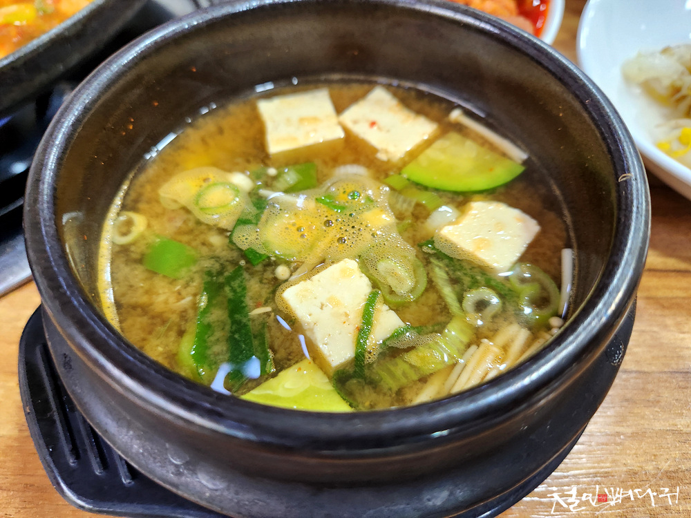 된장찌개는 제육볶음에 따라 나온 것 아닐까 싶었습니다.