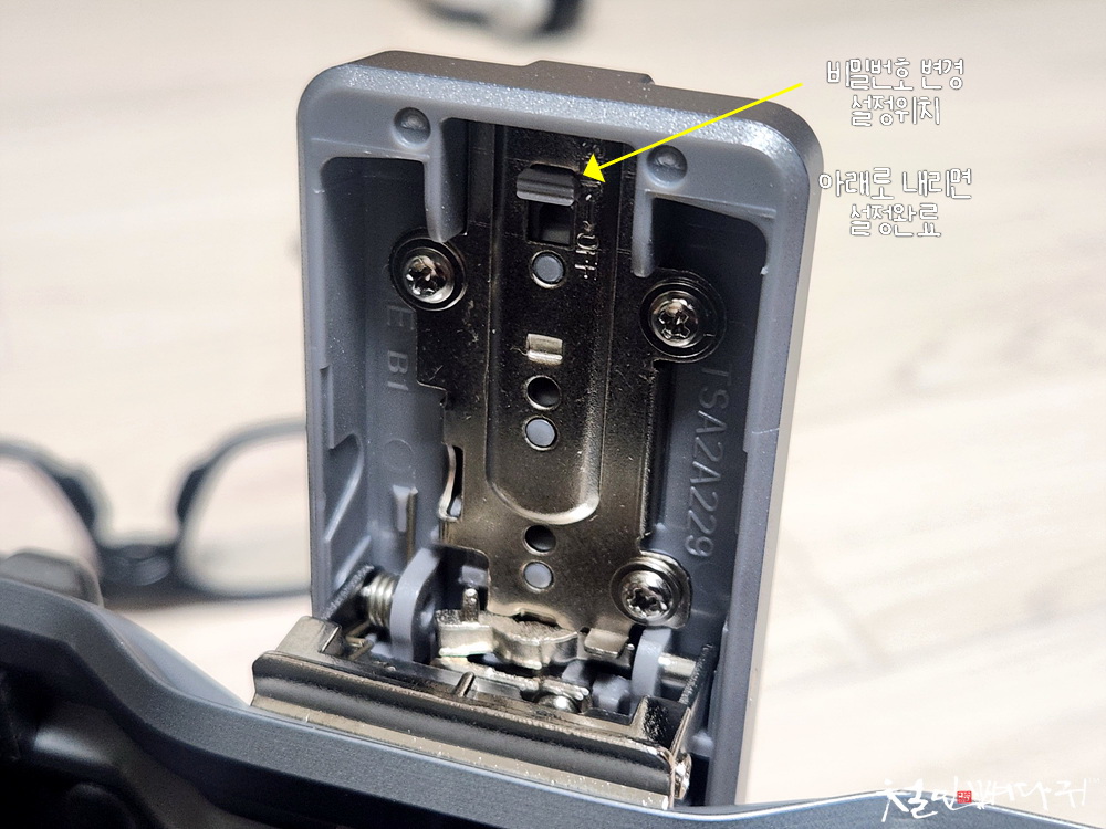 안쪽에 버튼 올리고 비밀번호 설정 후,