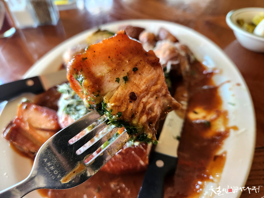 두툼한 고기는 한번 튀긴듯한 비주얼로